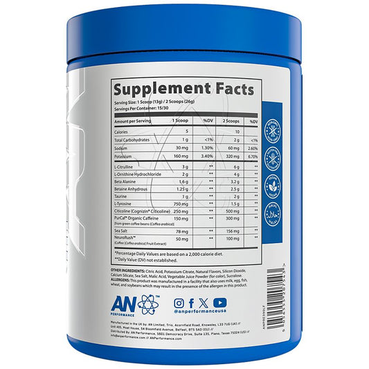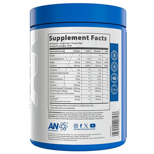 AN PERFORMANCE|Performance Energy Pre-Workout|Blue Raspberry-(13.7 Oz./ 30 Servings)