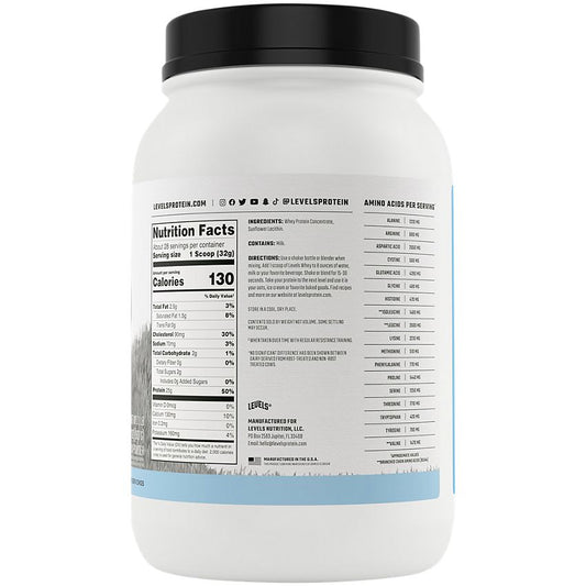 Levels Nutrition|Grass Fed Whey Protein|Unflavored|(2 Lbs. / 28 Servings)