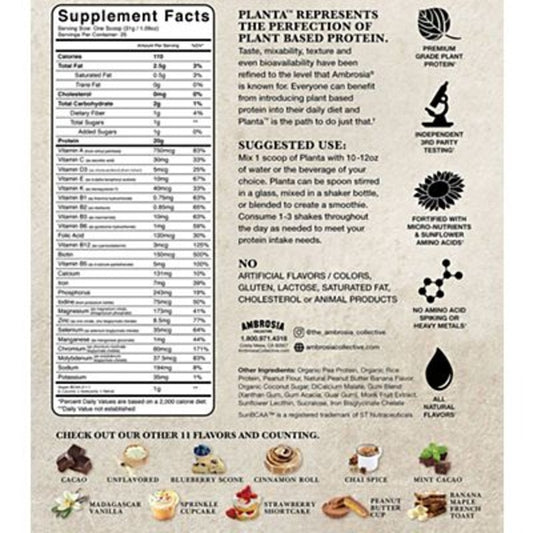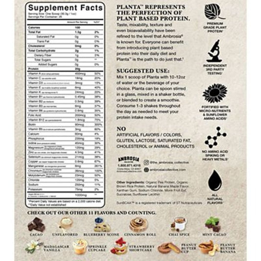 Ambrosia Collective Planta Plant Protein|Peanut Butter Banana|1.71 lbs./25 Servings|