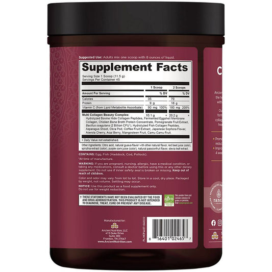 Ancient Nutrition|Guava Passionfruit|Multi Collagen Protein Powder|Beauty Within (45 Servings)