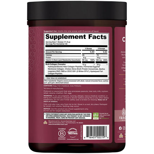 Ancient Nutrition|Chocolate|Multi Collagen Protein Powder|Supports Healthy Skin, Nails & Joints(40 Servings)