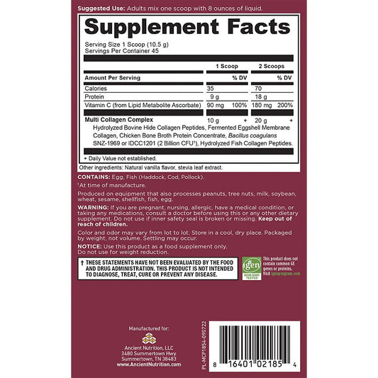 Ancient Nutrition|Vanilla|Multi Collagen Protein Powder|Supports Healthy Skin, Nails & Joints(45 Servings)
