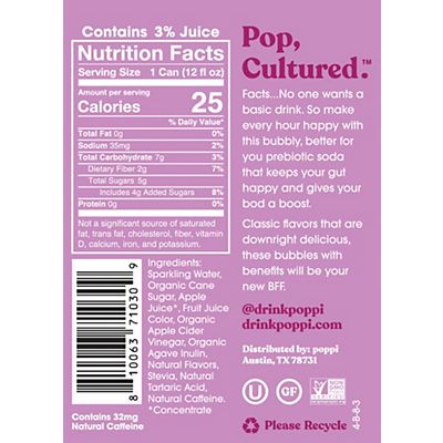 Poppi Prebiotic Soda - Doc Pop (12 Drinks, 12 Fl Oz.)