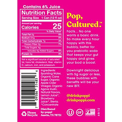 Poppi Prebiotic Soda - Strawberry Lemon (12 Drinks, 12 Fl Oz.)