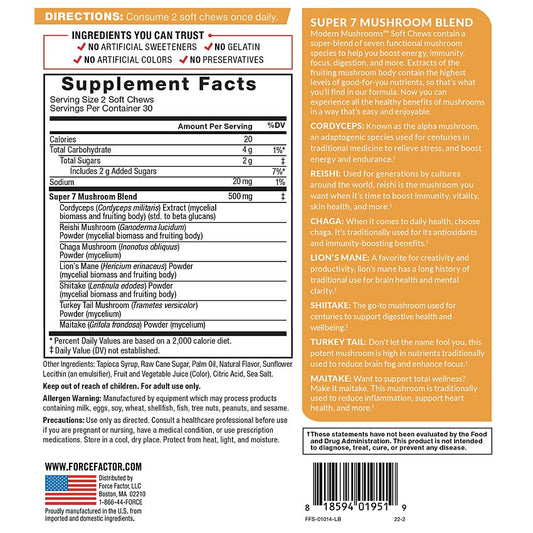 Force Factor|Modern Mushrooms Soft Chews|Supports Energy, Focus, Immunity & Digestion|Cinnamon-(60 Chews)