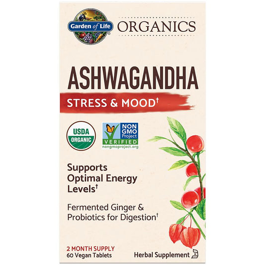 Garden of Life Organics Ashwagandha for Stress & Mood (60 Vegan Tablets)