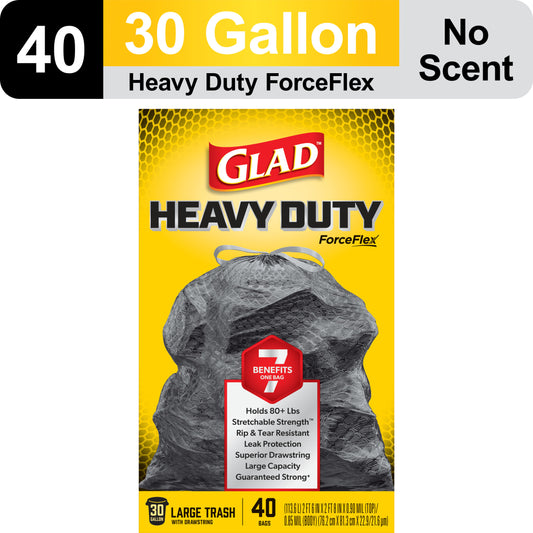 Glad ForceFlex 30 Gallon Large Trash Bags, Unscented, 40 Bags