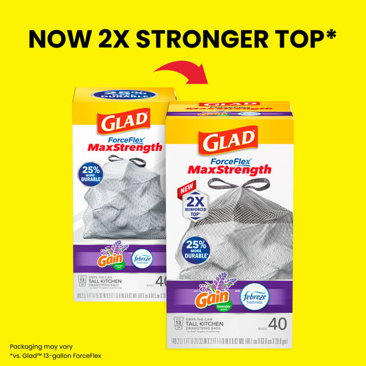 Glad ForceFlex|MaxStrength Tall Kitchen Drawstring Trash Bags|13 Gallon, Gain Lavender(40 Count)