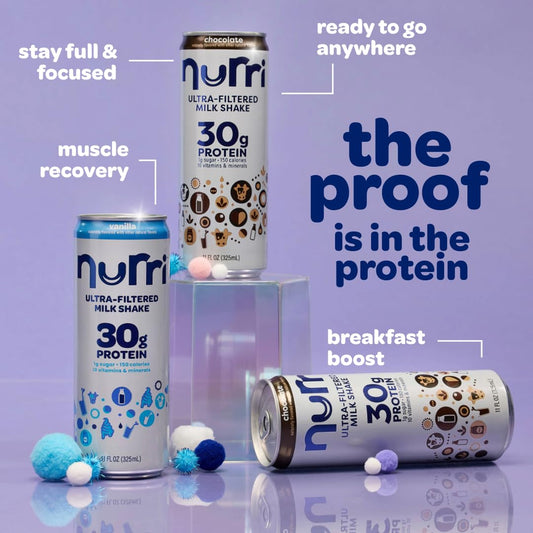 Nurri - 30g Protein Ultra Filtered Milk Shake – Chocolate - Lactose Free, Low Sugar, 150 Calories, 10 Vitamins and Minerals - 11 fl oz, 12 Cans