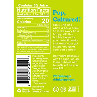 Poppi Prebiotic Soda - Ginger Lime (12 Drinks, 12 Fl Oz.)