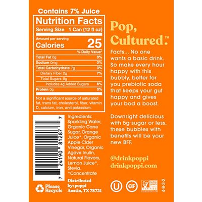 Poppi Prebiotic Soda|Orange (12 Drinks, 12 Fl Oz.)