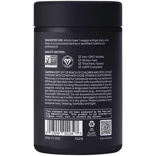 Sports Research Corporation|Plant-Based Vitamin|D3 + K2 as MK-7|Supports Bone Health-60 Softgels)