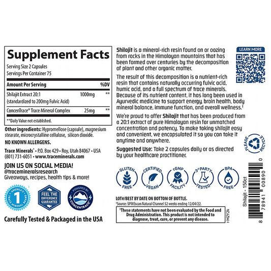 Trace Minerals Research|Himalayan Shilajit|1,000mg|20:1 Extract with Fulvic Acid-(150 Capsules)