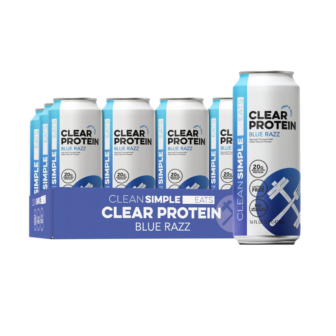 Clean Simple Eats|Clear Protein Drink|Grass-Fed Whey Protein|Blue Razz-(12 Drinks , 16 Fl Oz. Each)