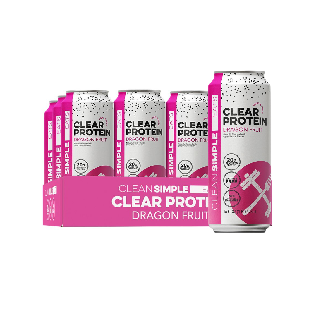 Clean Simple Eats|Clear Protein Drink|Grass-Fed Whey Protein|Dragon Fruit-(12 Drinks , 16 Fl Oz. Each)