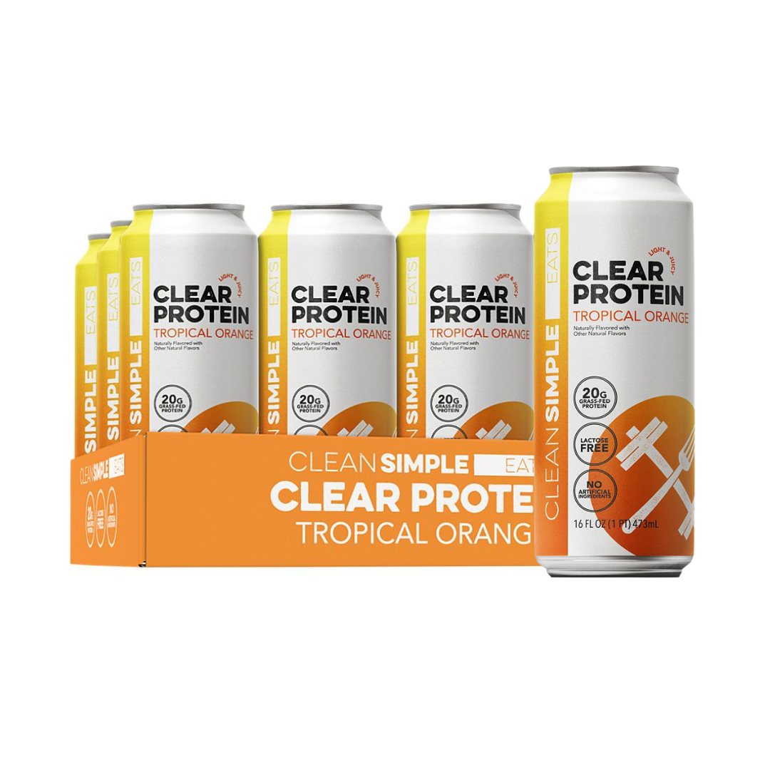 Clean Simple Eats Clear|Protein Drink|Grass-Fed Whey Protein|Tropical Orange-(12 Drinks , 16 Fl Oz. Each)