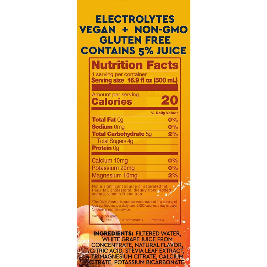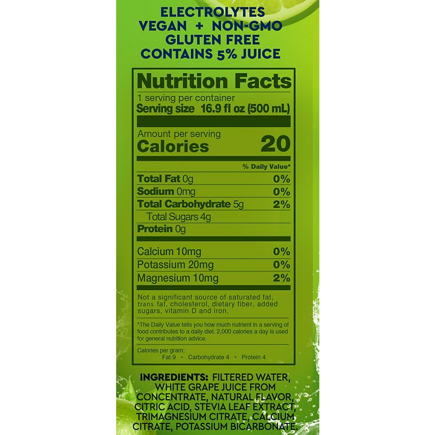 Filtered water, white grape juice from concentrate, natural flavor, citric acid, stevia leaf extract, trimagnesium citrate, calcium citrate, potassium bicarbonate
